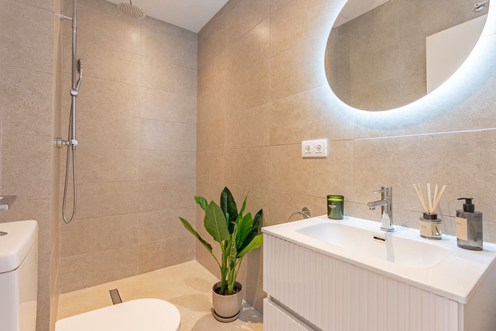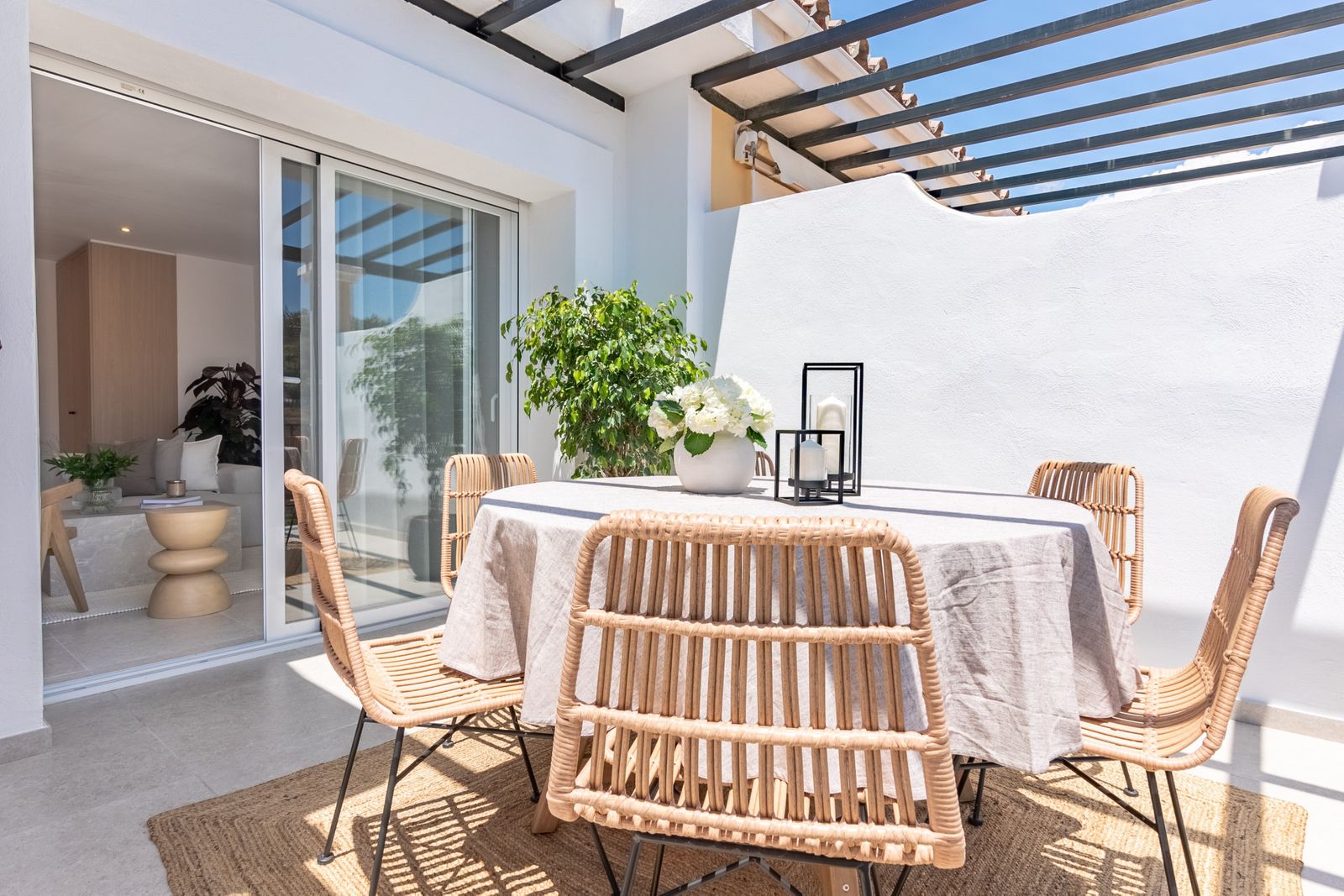 First thing you notice is the light and space as you enter the property. All materials have been carefully sourced and selected in order to create a Scandinavian boutique feel. The terrace has incredible views over the sea, mountain and golf course.