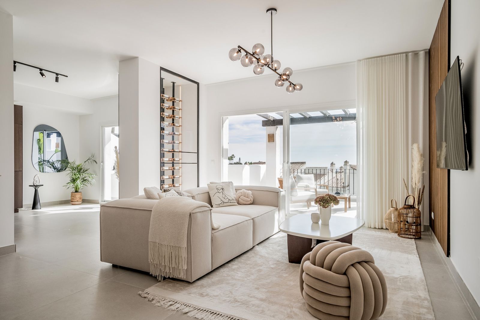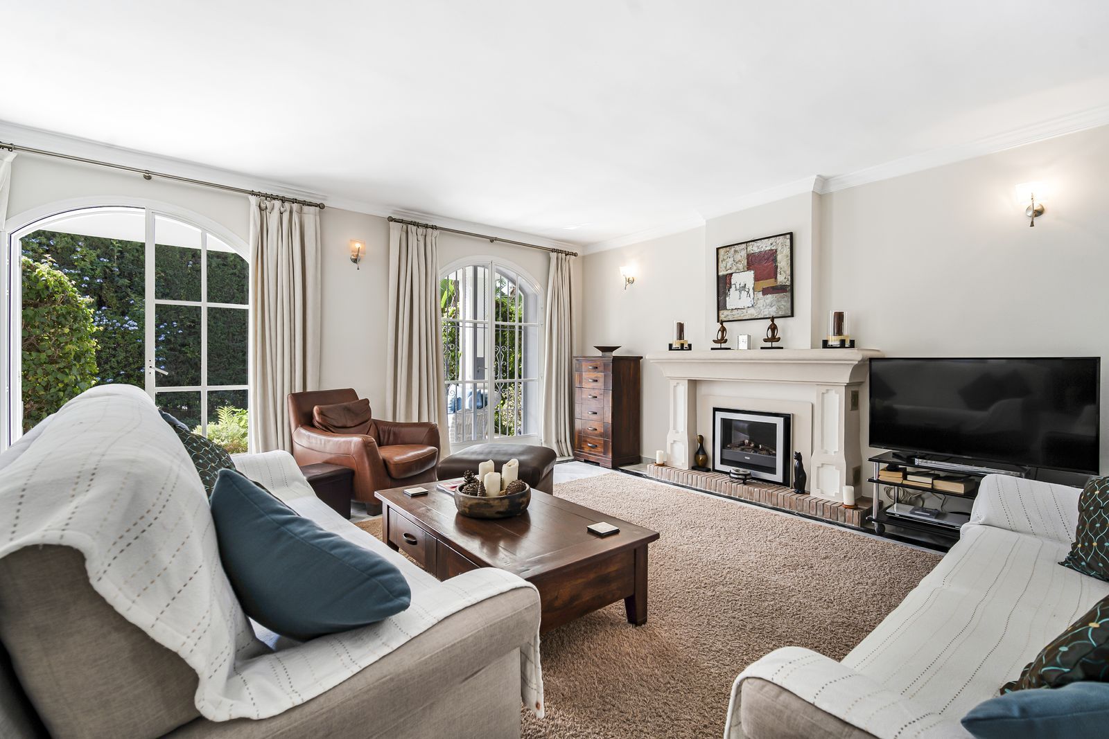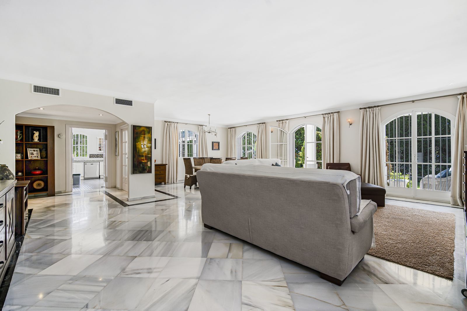 The living room a very nice size with 3 sets of terraces doors leading to a large, south facing covered terrace.