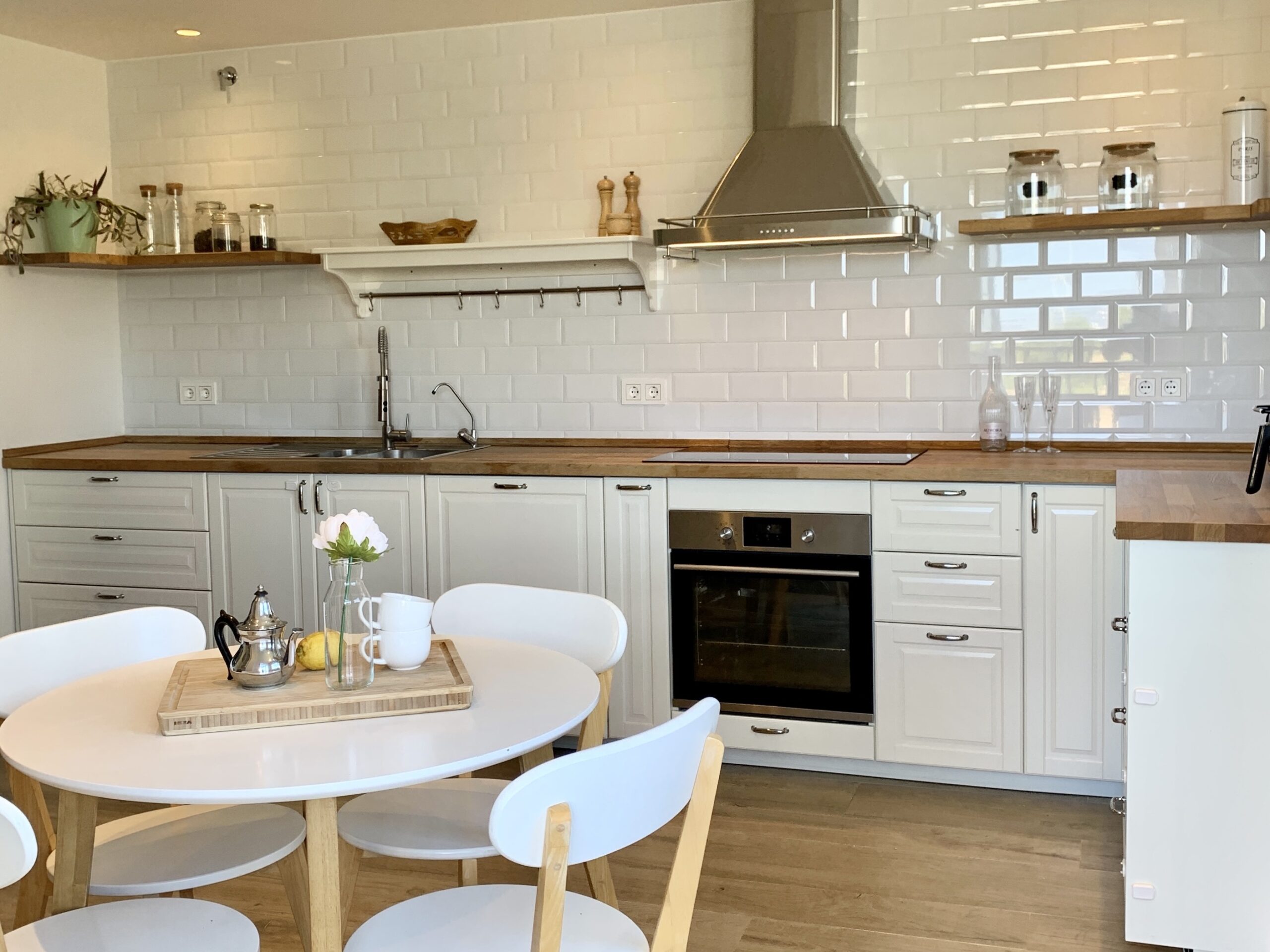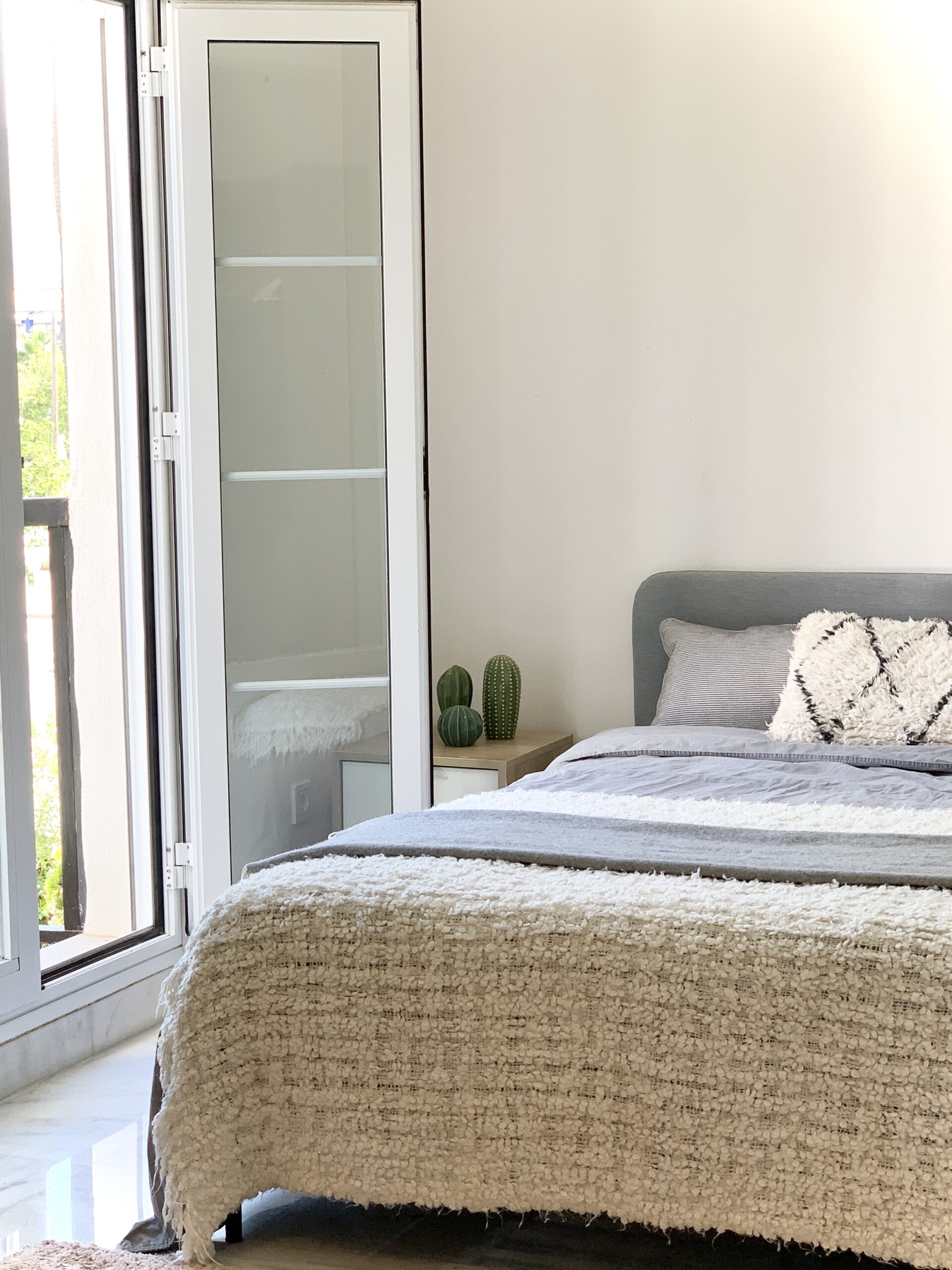 The apartment is perfect for families, featuring everything you need for your stay. The apartment has three bedrooms, two bathrooms, and one guest toilet. The master bedroom has a king-size bed with an ensuite bathroom. The second bedroom is equipped with a queen-sized bed, while the third bedroom includes a sofa bed that can be converted into a queen-sized bed. The living room is spacious and light, with access to the terrace with a lounge sofa and views of the pool. The kitchen is fully equipped and also provides direct access to the second balcony equipped with a barbecue and dining seating.