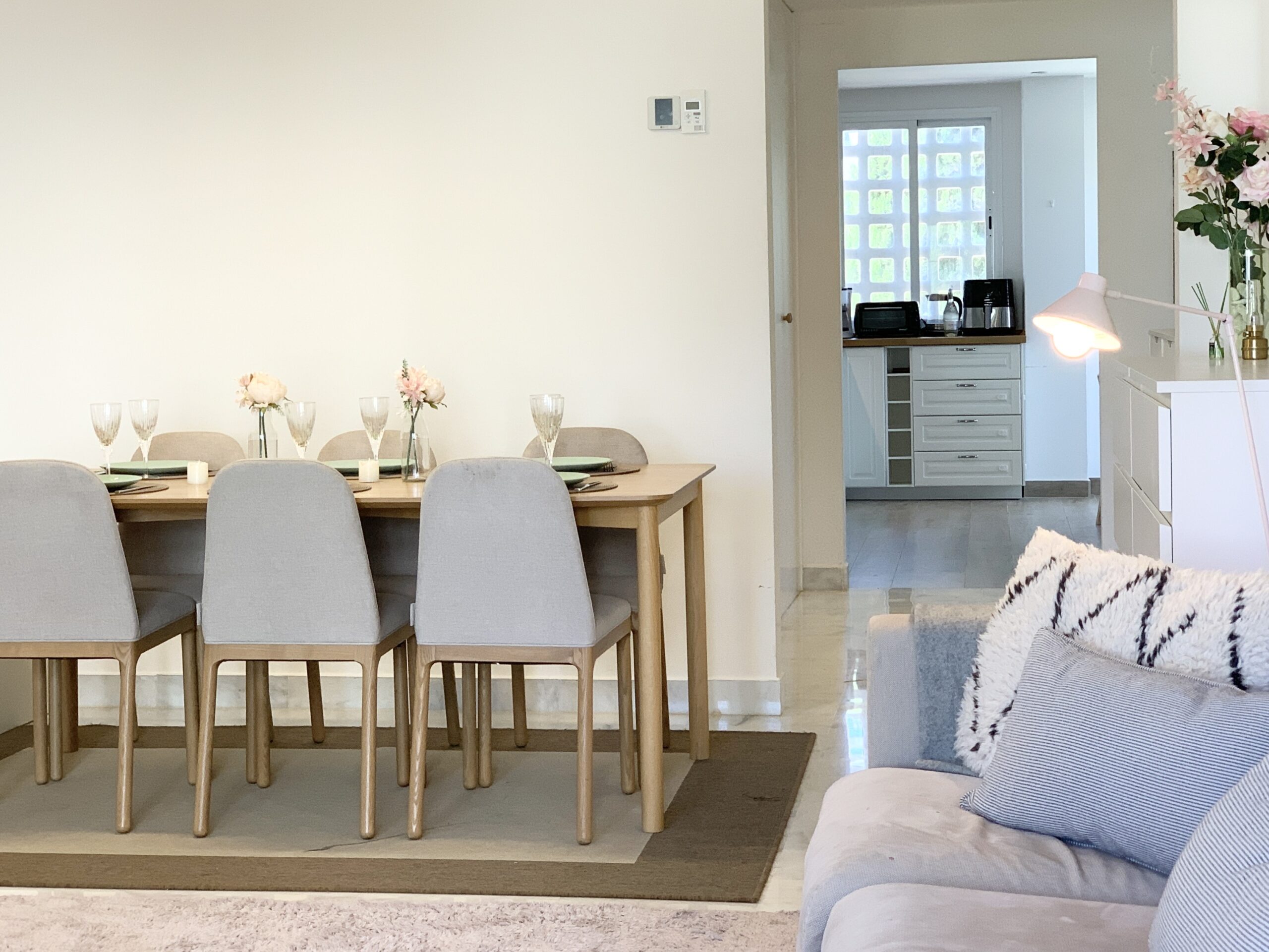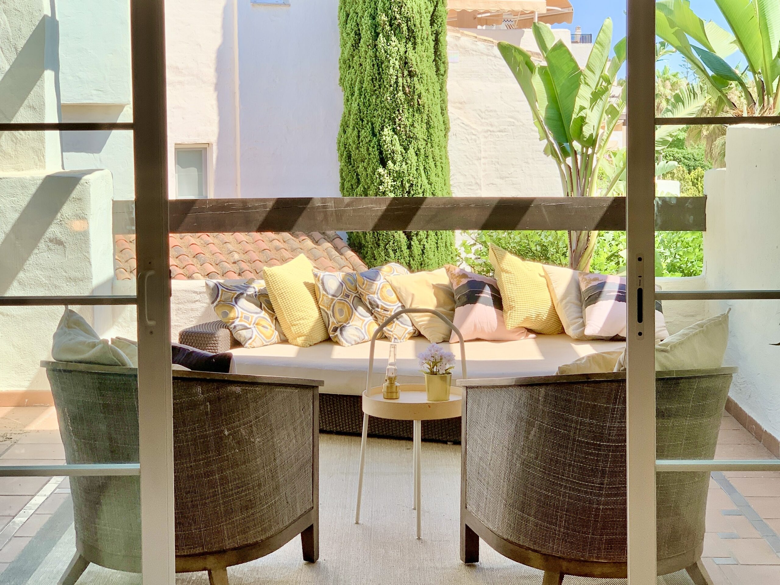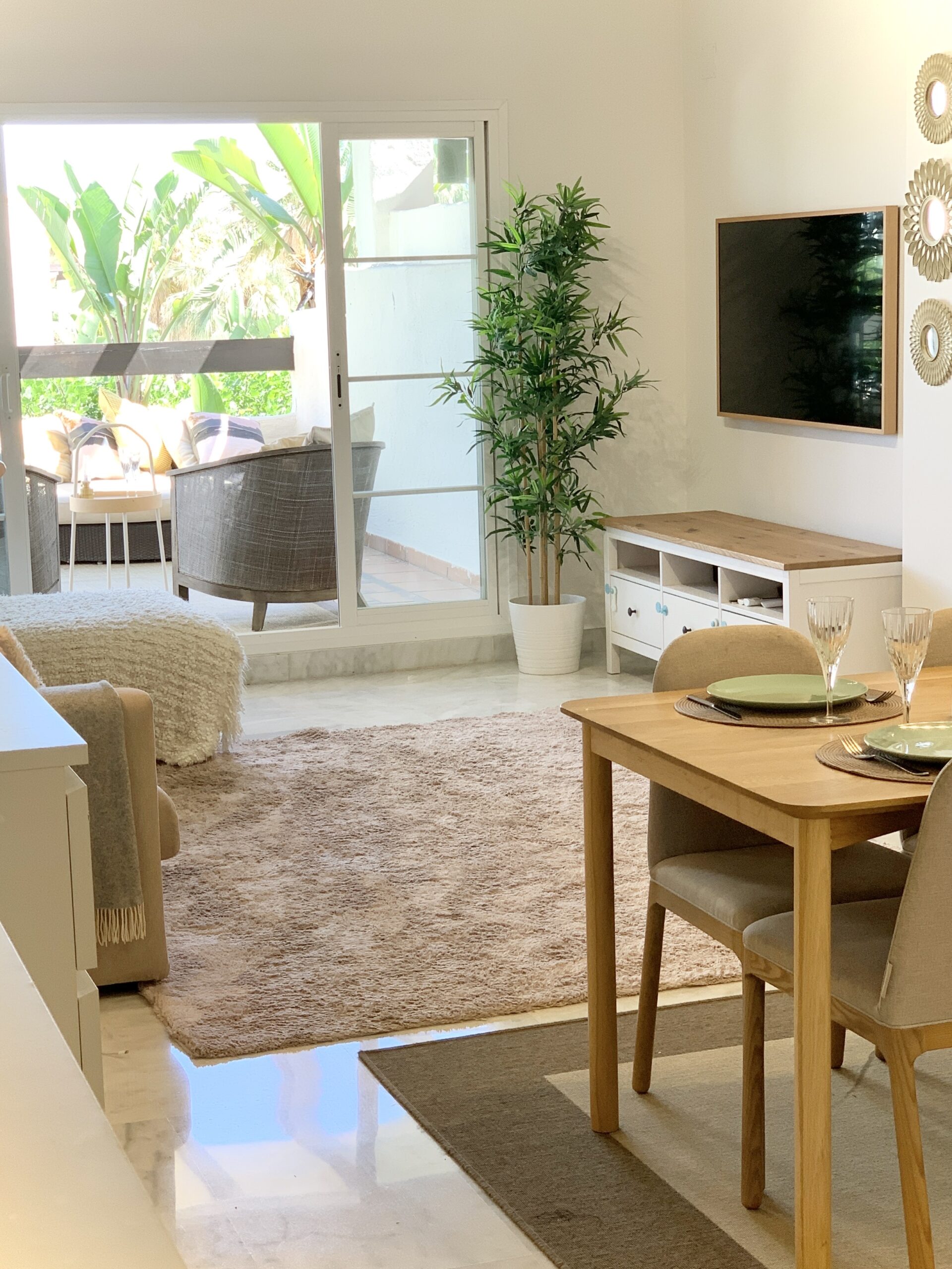 Modern apartment in San Pedro beach with just a few steps away from the beautiful beach and the bustling boulevard. This beautiful property is located in the urbanization Las Adelfas, with two large pool areas and a well-manicured garden.
