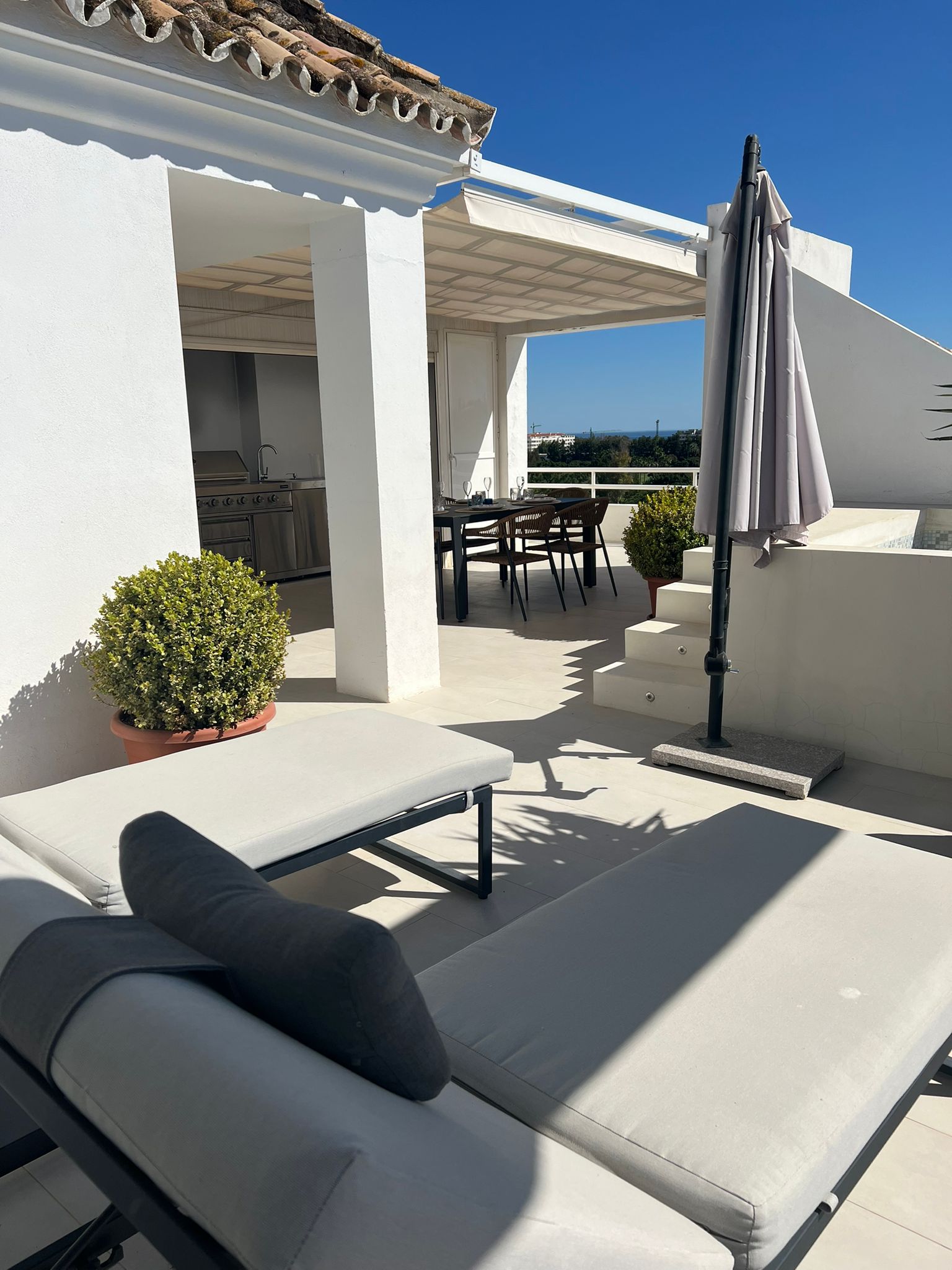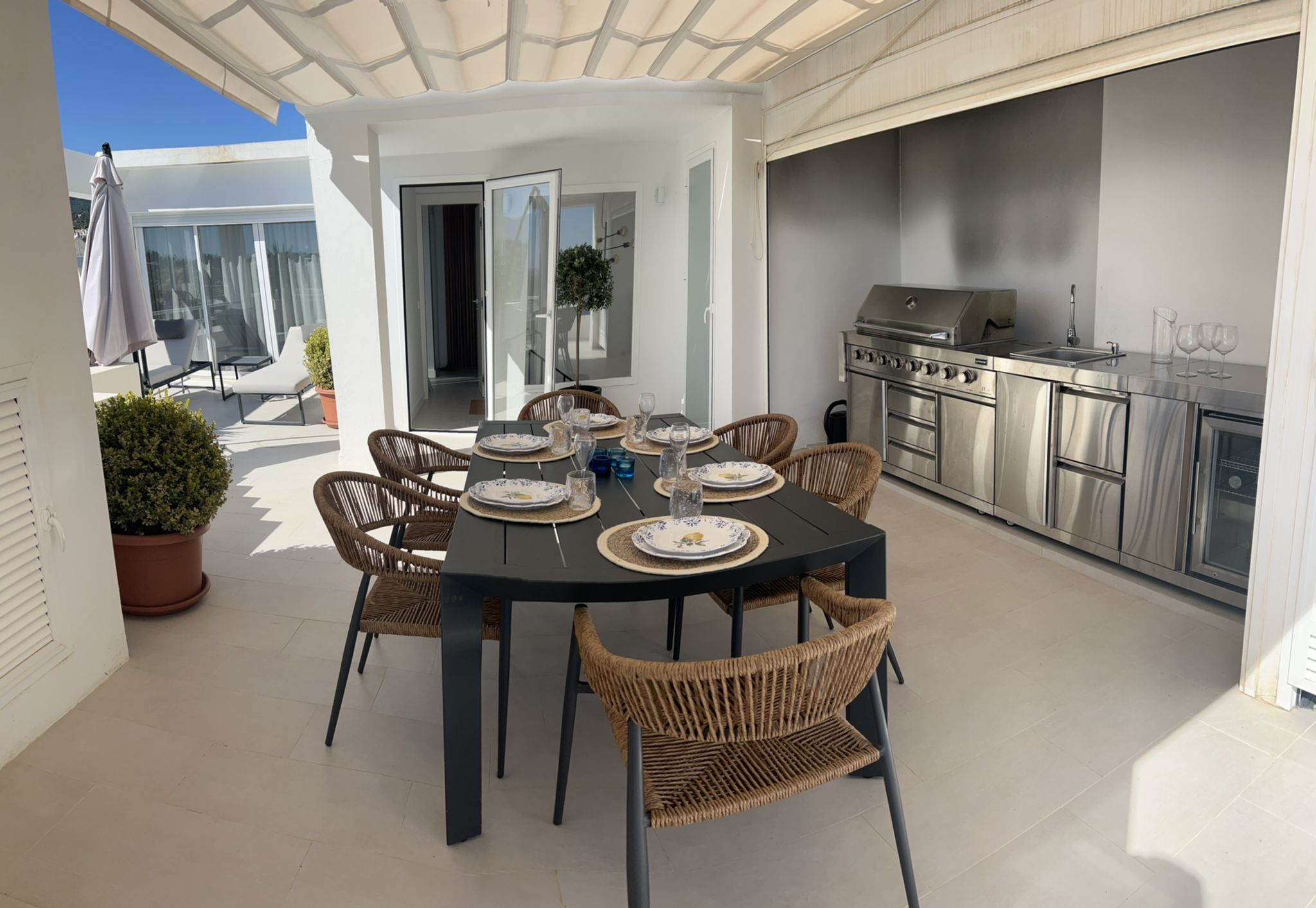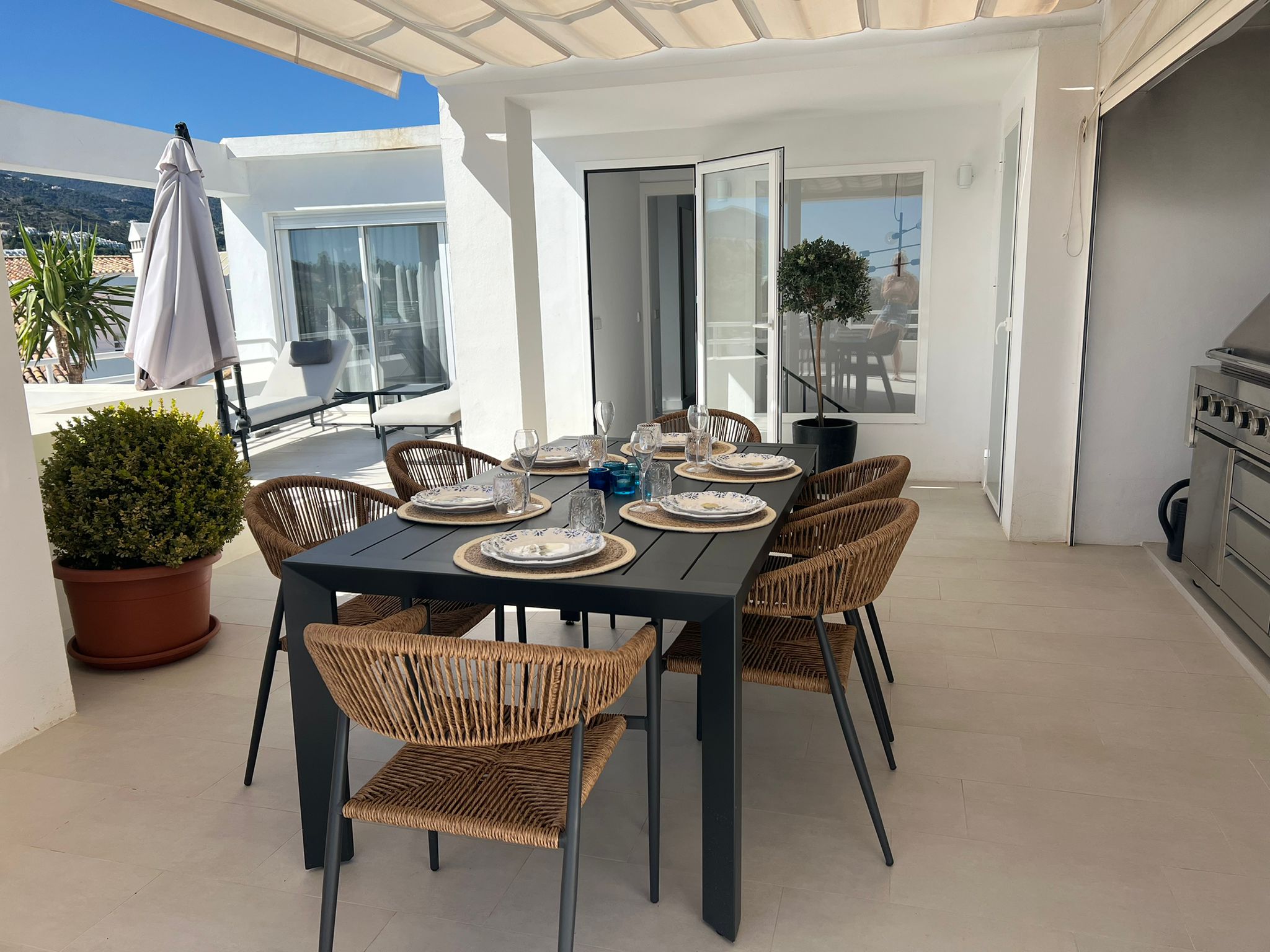 Welcome to this magical penthouse on the first line of Los Naranjos Golf, with breathtaking views. The highlight of this property is undoubtedly the spectacular roof terrace, which includes an outdoor kitchen, a private plunge pool, and panoramic views of the golf course.