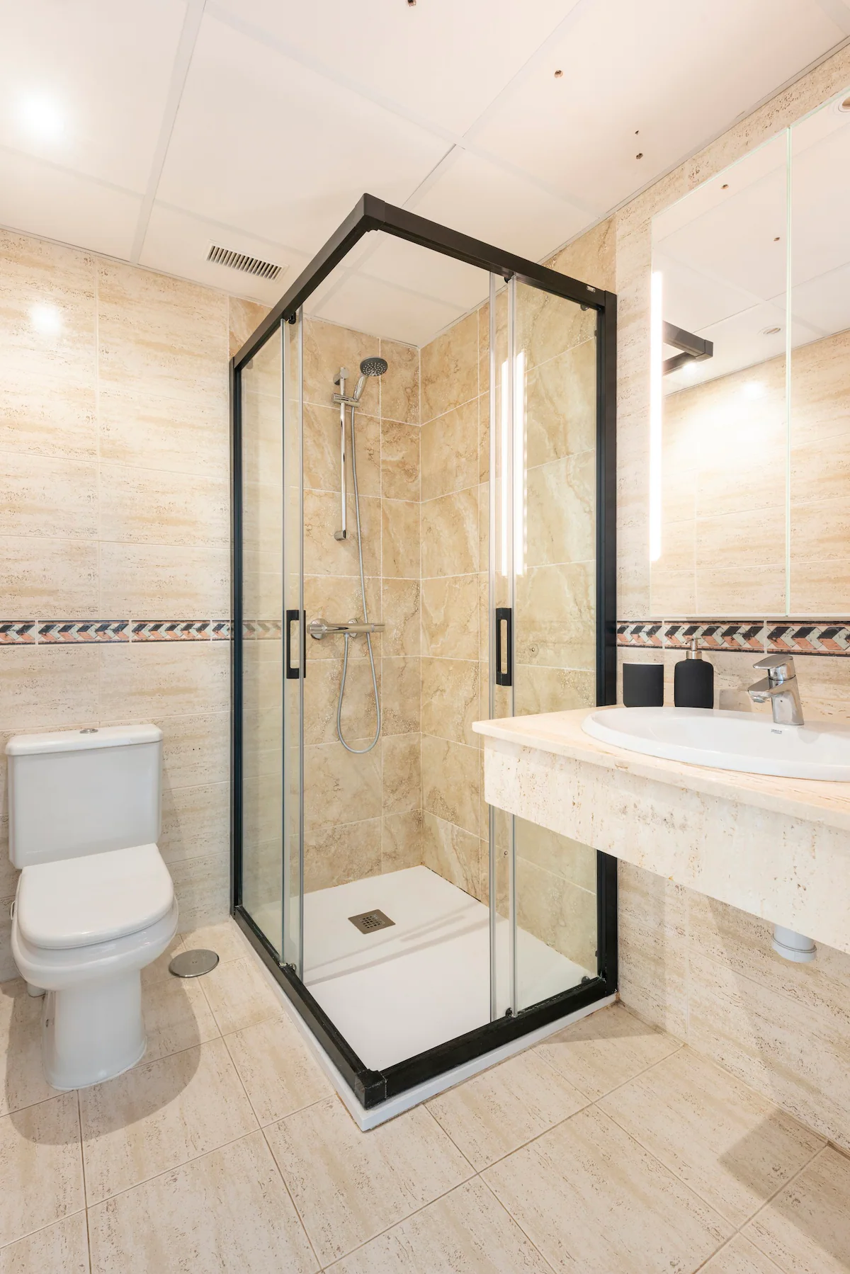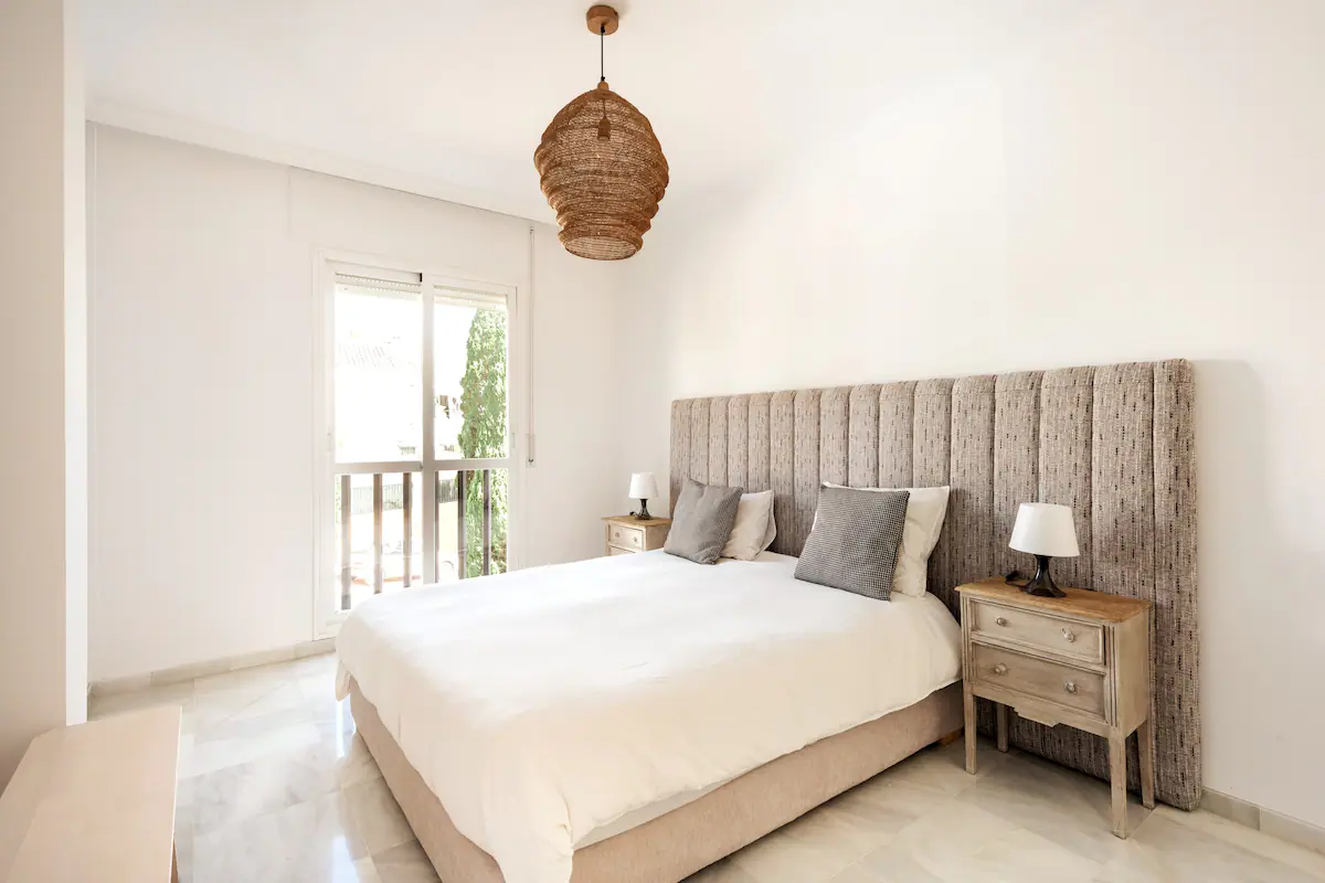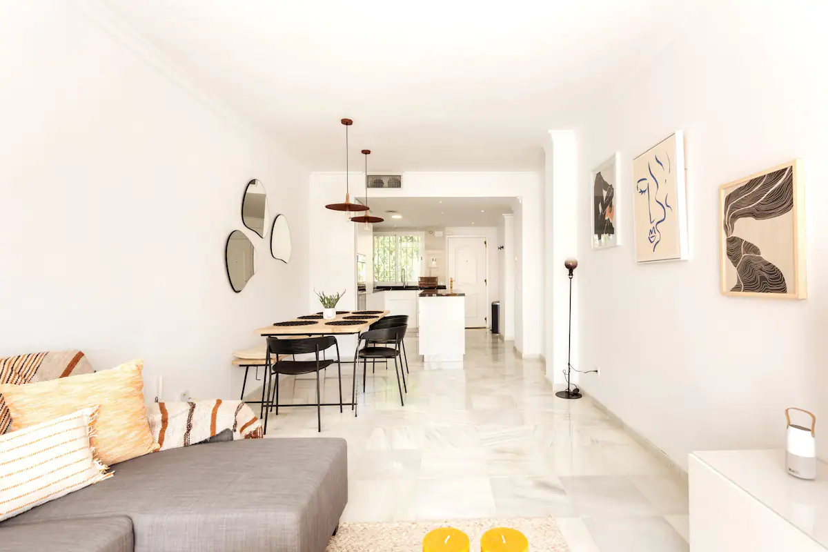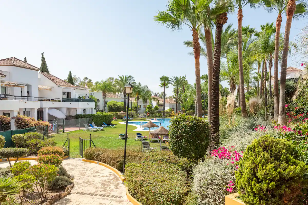 There are 2 bedrooms, one with a queen-size bed and an en-suite bathroom. The second bathroom is in the corridor between both bedrooms. The apartment is located very close to several golf courses and a 7-minute drive to Puerto Banus. Senorio de Gonzaga is a beautiful, well-kept community with lush gardens and a peaceful vibe.
