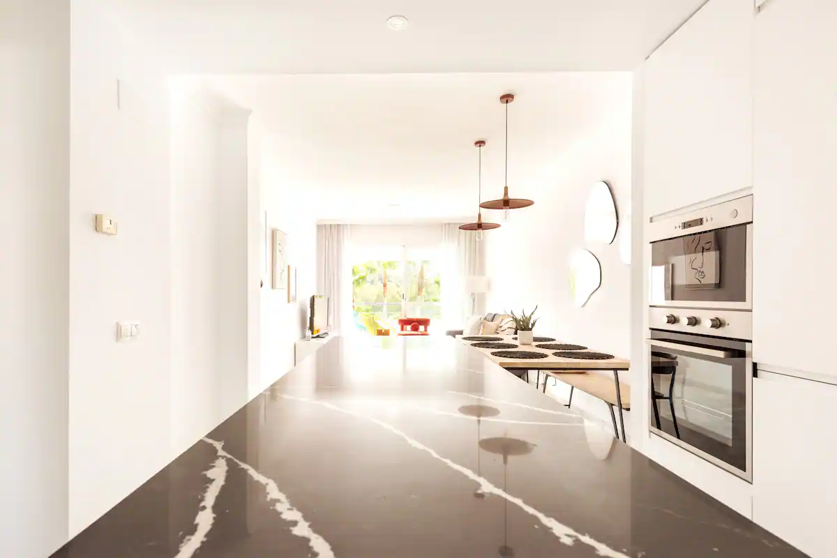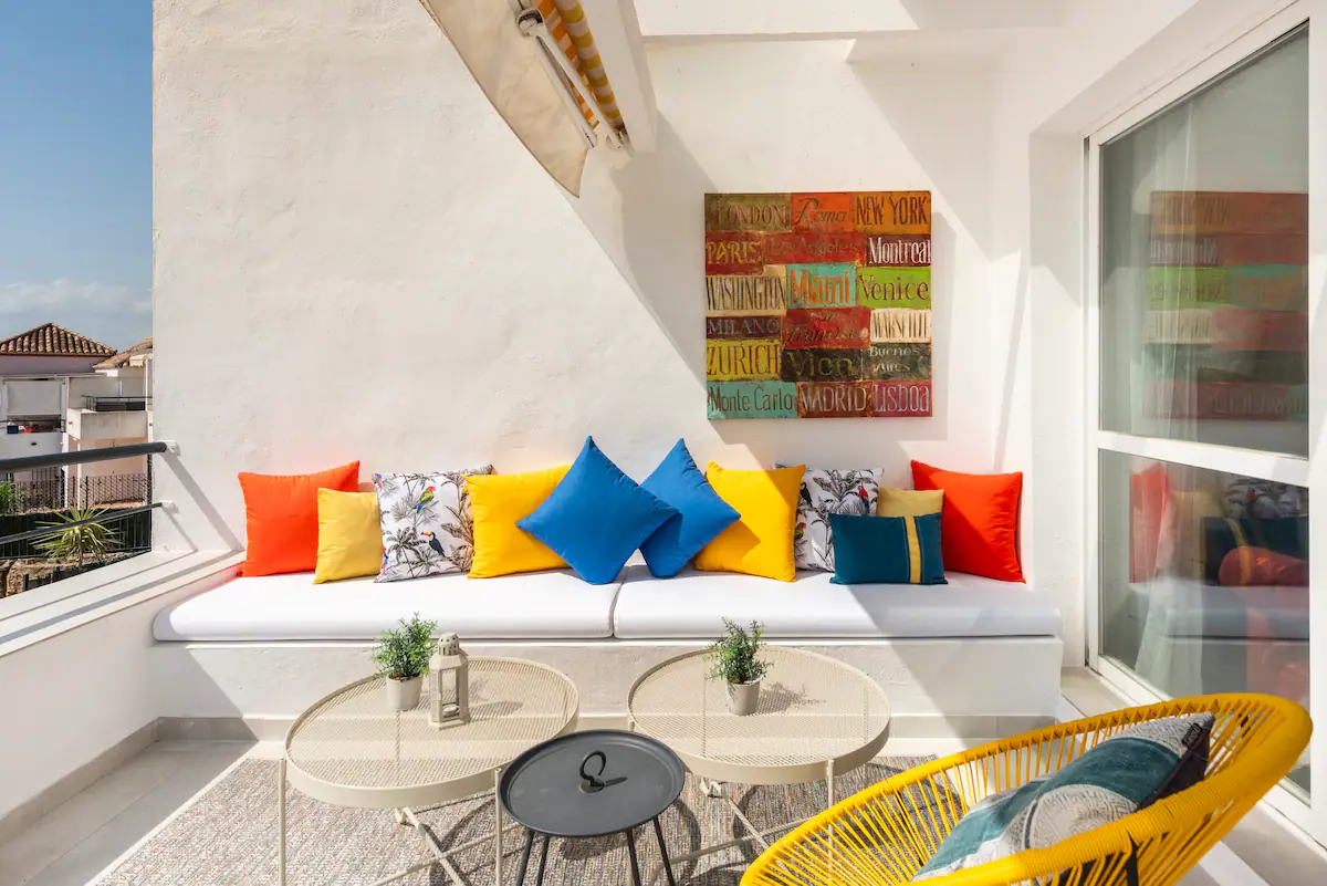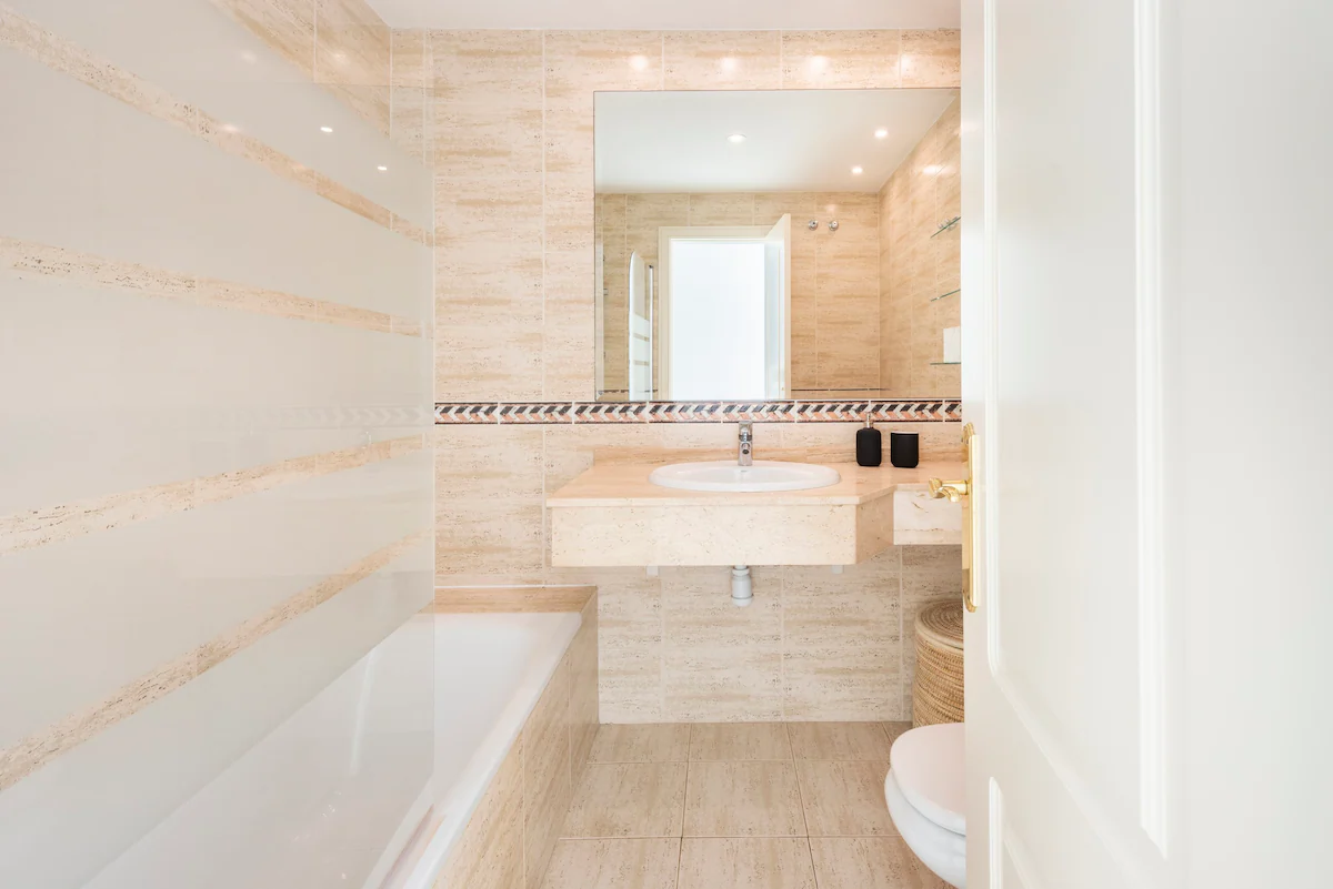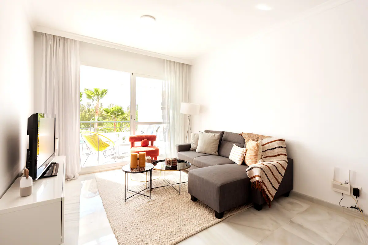 There are 2 bedrooms, one with a queen-size bed and an en-suite bathroom. The second bathroom is in the corridor between both bedrooms. The apartment is located very close to several golf courses and a 7-minute drive to Puerto Banus. Senorio de Gonzaga is a beautiful, well-kept community with lush gardens and a peaceful vibe.