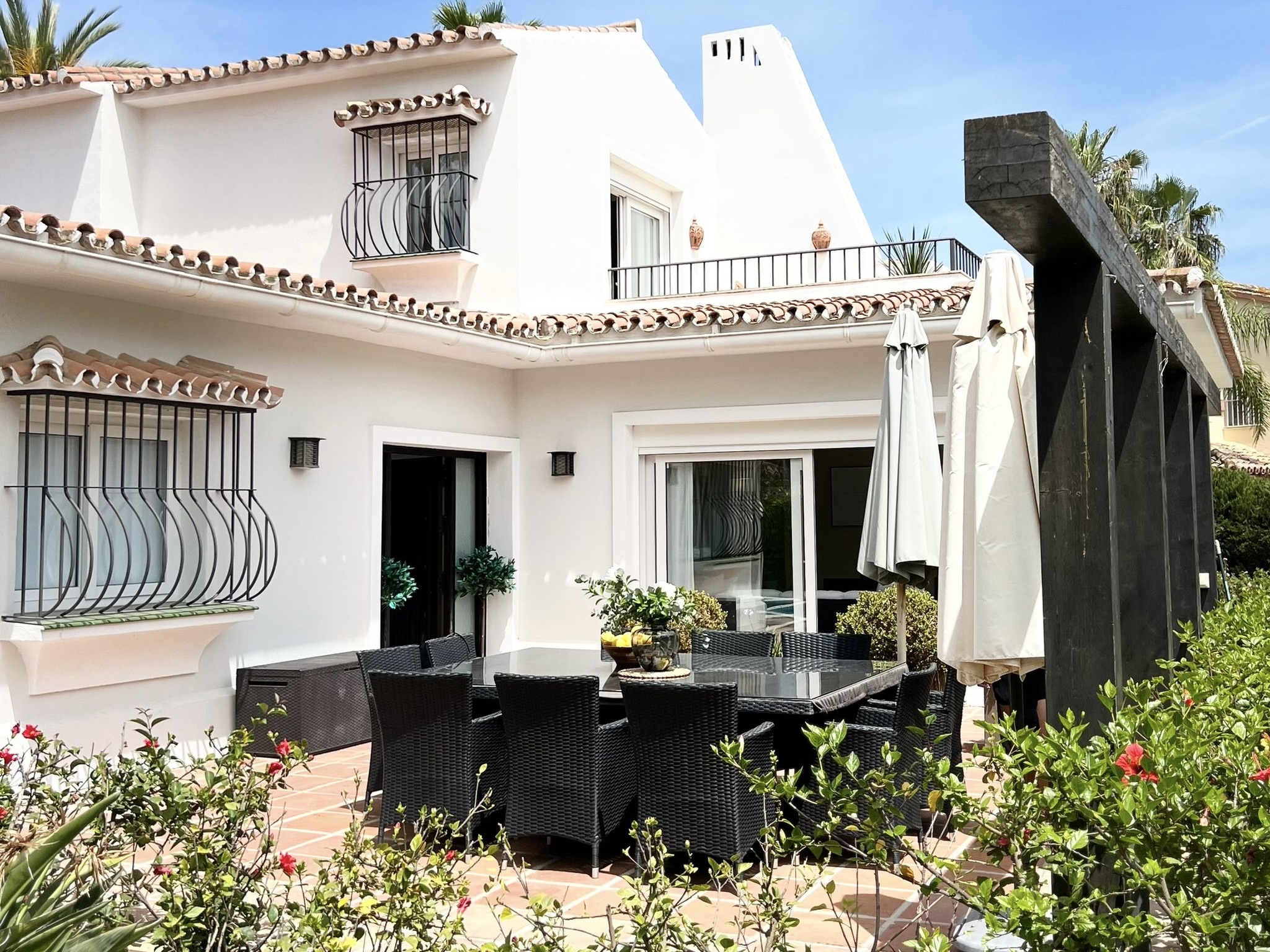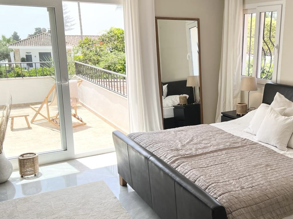 The villa has a private pool, a spacious garden, and a barbecue area, offering a delightful outdoor experience. You can also enjoy the convenience of having a house cleaner available for cleaning during your stay. The surroundings offer various restaurants and grocery stores, ensuring easy access to dining and shopping options. The villa is located approximately a 10-minute drive from Puerto Banus