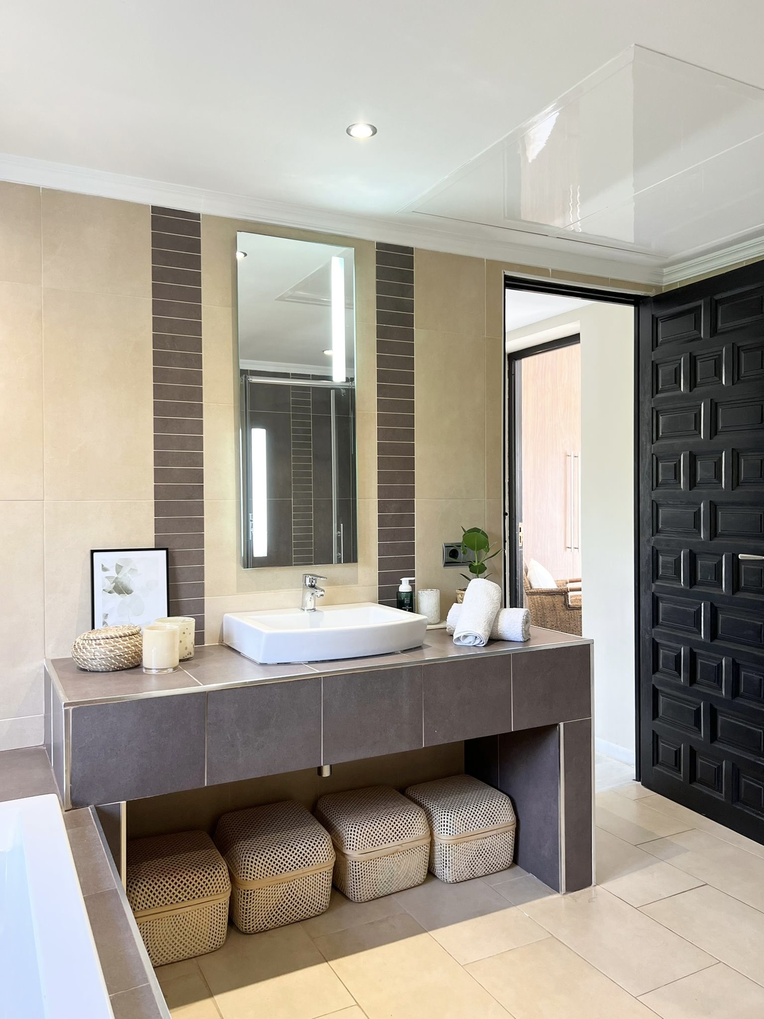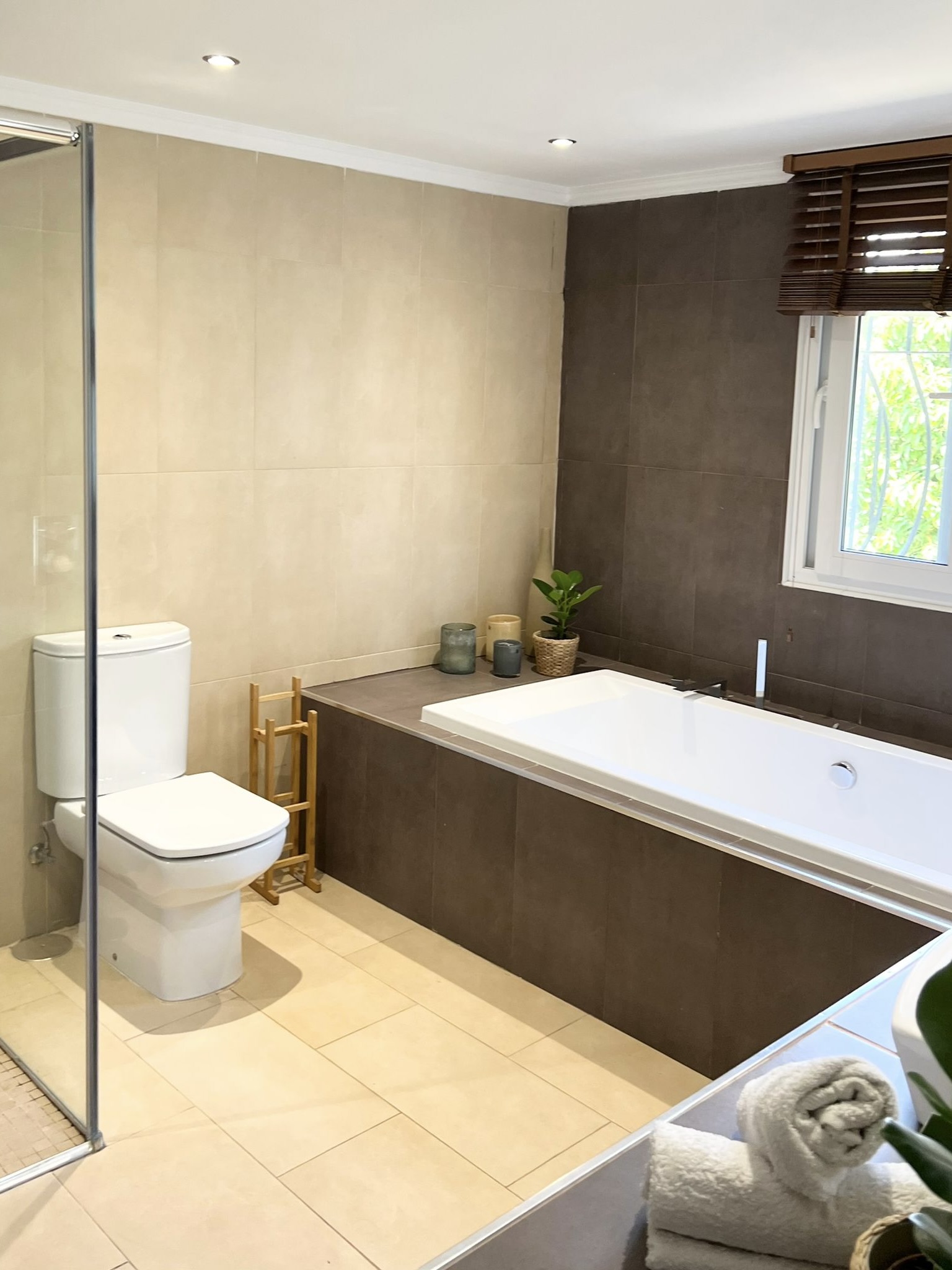This villa offers plenty of space to comfortably accommodate up to twelve individuals with five expansive bedrooms. Among these bedrooms is a guest bedroom with a private bathroom.